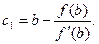 Пусть = . Выберем тот край отрезка , на котором функция имеет тот же знак, что и ее вторая производная. В нашем примере на приведенной выше схеме - это точка b