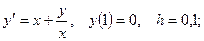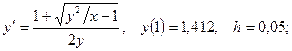 5. Применяя метод Эйлера, найти решение дифференциального уравнения с данными начальными условиями в указанных точках: