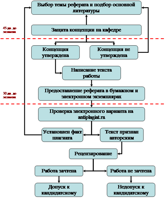 - Реферат должен быть предоставлен в отдел аспирантуры вместе с экземпляром зачтенной концепции (с подписью преподавателя, проводившего собеседование) не позднее, чем за месяц до сдачи экзамена