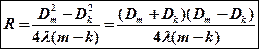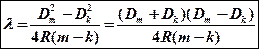 Учитывая, что диаметр кольца , а , получаем формулу для расчёта радиуса кривизны линзы: