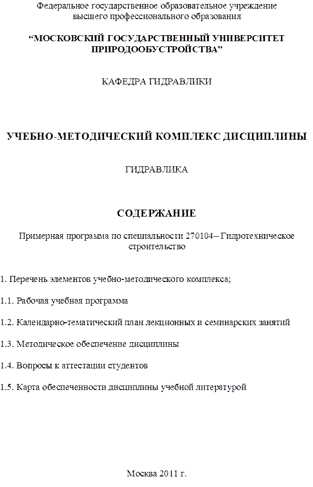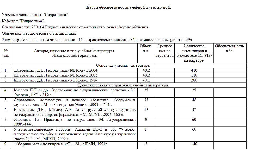 1. Учебно-методическое пособие к выполнению заданий по курсу гидравлики (часть1): Алышев В.М. и др. – М.: МГУП, 2009 г.