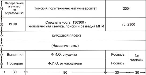 Схема оформления штампа на листах чертежей к курсовому проекту