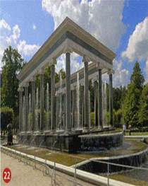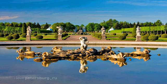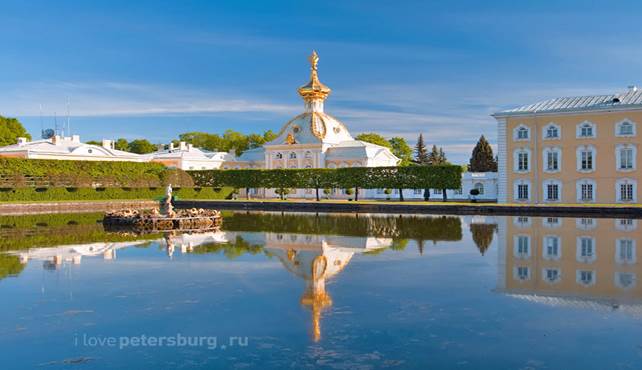 Петергоф – «столица фонтанов». Он не имеет равных в России, а в Европе с ним может сравниться только Версаль. История Петергофа, как царской резиденции, связана в первую очередь с российскими императорами, проводившимися здесь время, устраивавшими приемы, балы, маскарады, фейерверки. Петергоф располагается на двух террасах, с которых открывается прекрасный вид на панораму Финского залива. Центром всего ансамбля является Большой дворец, стоящий на верхней террасе. Интерьеры дворца богато украшены предметами декоративного прикладного искусства. Главным украшением Петергофа являются сотни самых разных по виду и оформлению фонтанов, создающих его неповторимый облик. Вокруг Большого дворца расположены Верхний и Нижний парки. Их украшают многочисленные павильоны, предназначавшиеся для увеселений и отдыха.