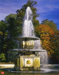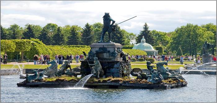 В 1799 году обветшавшую фонтанно-скульптурную группу «Нептунова телега», выполненную из свинца, заменили бронзовой. В действительности «новый» фонтан, названный «Нептуном», оказался старше Петергофа почти на 50 лет Его изготовили еще в 1650–1660 годах нюрнбергские скульпторы, золотых дел мастера. Из-за отсутствия средств в магистрате ценнейшее скульптурное украшение долго хранилось на складе, пока не нашелся покупатель — русский царь Павел I.