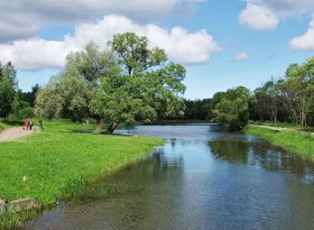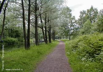 Луговой (Озерковый) парк. Двухкилометровая липовая аллея, проложенная от Верхнего сада вдоль Самсониевского чугунного водовода, соединяет парковый ансамбль XVIII века с Луговым парком, одним из красивейших ансамблей пейзажного стиля, созданным при Николае I. Территория Лугового парка делится на три района: Никольский, Озерковый и Бабигонский.