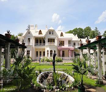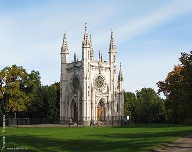 Дворцово-парковый ансамбль "Александрия" - резиденция русских императоров XIX - начала XX веков. Расположенная восточнее Нижнего парка, она отделена от него каменной стеной, которую прорезают Звериные, Никольские и Морские ворота, а с другой стороны граничит с усадьбой Знаменка. Южная граница Александрии проходит вдоль шоссе Петербург - Ораниенбаум (Ломоносов), а северная - по берегу Финского залива. Площадь парка -115 гектаров. Приморский пейзажный парк Александрия раскинулся на двух террасах: нижней (прибрежной) и верхней, на которой были возведены основные архитектурные сооружения ансамбля - Коттедж, Фермерский дворец и Капелла. Рельеф местности позволил создать разнообразные живописные пейзажи, в которых чередуются возвышенности и поляны, пологие склоны и глубокий овраг, широкие тенистые аллеи и узкие петляющие дорожки. Особое своеобразие в пейзаж Александрии привносит море, видимое из многих точек парка. Территория, на которой расположена Александрия, принадлежала четырем владельцам, получившим от Петра I участки для дач. Согласно описям, это были участки подьячего Александра Яковлева, гвардии поручика Данилы Чевкина, генерала фельдцейхмейстера Якова Брюса и Петра Мошкова. В описи петровского времени нет имени Меншикова. Владельцы менялись уже при жизни Петра I до самого 1725 года. По некоторым данным, А. Меншиков прибрел эти земли в 1725 - 1726 годах. Здесь Александр Данилович начал строить дворец "Монкураж" ("Моя отвага"). После опалы петровского фаворита эти земли были переданы его политическим противникам - князьям Долгоруким, которые мало заботились об их обустройстве, и в народе получили название "Долгоруковых пустых мест". В 1730 году на русский престол вступила Анна Иоанновна. Императрица не особенно вникала в управление страной, предавалась увеселениям и тратила на них огромные средства. Как утверждают историки, императрица Анна была искусным стрелком, лихой наездницей и заправским охотником. В 1733 году эта местность становится собственностью императрицы, которая приспосабливает ее для царской охоты. В Охотничий парк ("Ягд-Гартен") завозится огромное количество животных: оленей, буйволов, кабанов, зайцев и даже тигров. В верхней части парка строится егерская слобода и загоны для зверей; в нижней - деревянный павильон "Темпель". Именно отсюда стреляла императрица в животных, выпускаемых из загона и гонимых собаками.