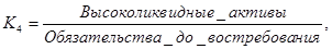 Коэффициент срочной ликвидности банка k5 рассчитывается как отношение краткосрочных активов банка к размеру краткосрочных обязательств (4):