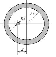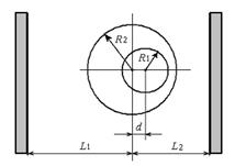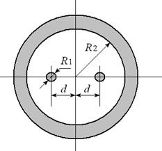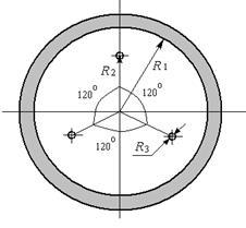 Трехжильный экранированный кабель с симметричным расположением жил с внутренним радиусом экрана R