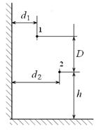 . Нижний провод находится на расстоянии H от земли. Верхний на d выше нижнего. Граница сред проходит на равном расстоянии от проводов.