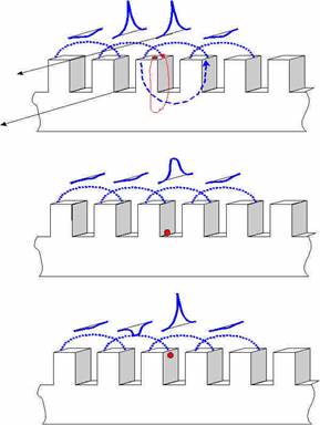 Рисунок 4 - Схема, поясняющая изменение амплитуды и полярности регистрируемого сигнала от различных дефектов при перемещении датчика.