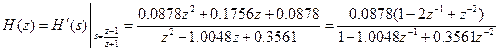 Используя метод билинейного z-преобразования, получите передаточную функцию H(