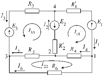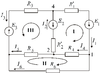 2. Рассчитать токи в ветвях схемы, используя метод контурных токов;