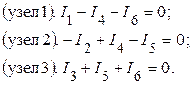 3. Составляем часть уравнений расчетной системы, используя только первый закон Кирхгофа. Выбираем узлов на схеме (данная схема содержит узла, которые отмечены арабскими цифрами) и для каждого из них составляем уравнение по первому закону Кирхгофа