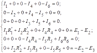 1. Составить систему расчетных уравнений для определения токов в ветвях схемы, используя оба закона Кирхгофа непосредственно (метод законов Кирхгофа);