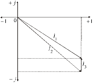 делим указанные составляющие токов на масштаб и откладываем получающиеся отрезки в сантиметрах вдоль осей комплексной плоскости (с учетом знаков составляющих)