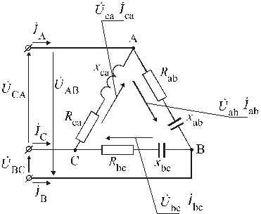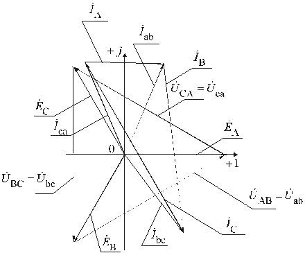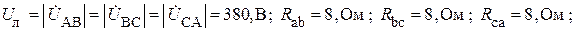 1. Определить линейные токи, фазные токи и фазные напряжения;
