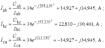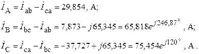 5. Рассчитываем линейные токи, используя первый закон Кирхгофа