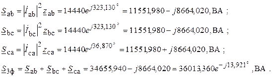 6. Определяем полные комплексные, полные, активные и реактивные мощности каждой фазы и эти же мощности на всем трехфазном приемнике