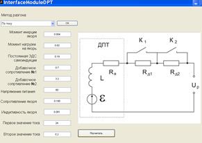 Моделирование динамики разгона и торможения двигателя постоянного тока производилось с использованием полной модели (1) и программы «Разгон», созданной в среде MatLab. На рис.3, рис.4 приведены экранные формы программы и результаты моделирования.