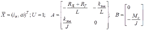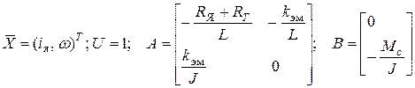 При расчетах и дальнейшем анализе разработанной системы управления используется математическая модель ДПТ в форме: