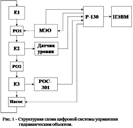 Структурная схема цифровой системы управления гидравлическим объектом представлена на рис.1.