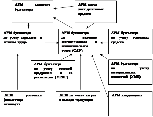Задача «учет отгруженной и реализованной продукции» решается на АРМах. Причем они объединены в сеть