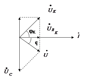 Резонанс напряжений наблюдается в электрической цепи однофазного переменного тока при последовательном соединении катушки индуктивности (с сопротивлениями: активным RK