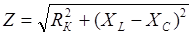 Полное сопротивление цепи переменного тока при последовательном соединении нагрузок, указанных выше, обозначается Z