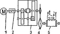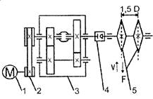 Кинематическая схема привода к цепному конвейеру: 1 – электродвигатель, 2 – муфта упругая, 3 – редуктор планетарный, 4 – цепная передача, 5 – звёздочка с тяговой цепью.
