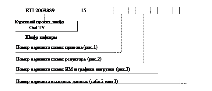 Каждый студент получает от руководителя шифр задания на курсовой проект, построенный по следующей схеме: