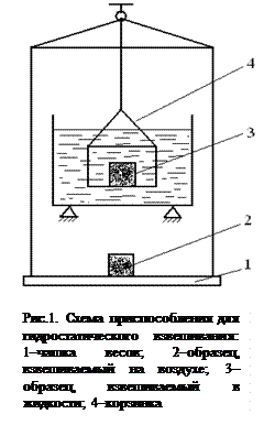 5. Взвесить в воде образцы с предполагаемой минимальной пористостью и образец, пропитанный парафином. Данные занести в табл. 1.