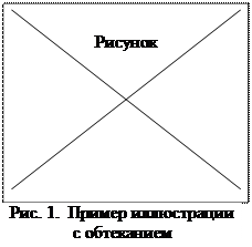 К рисункам относятся рисунки, схемы, диаграммы, графики и т.д. Все рисунки в тексте работы должны быть подписаны, размер подписи может быть 14пт. или 12пт. (но обязательно одинаковым во всем документе), в тексте работы обязательно дается ссылка на рисунок. Не допускается размещение иллюстраций без подписей и без ссылок на них в тексте работы. Преимущественно рисунок располагается в тексте работы так, чтобы текст находился сверху и снизу относительно него, рисунок при этом центруется. Пример оформления такой иллюстрации приведен на рисунке 2. Если иллюстрация слишком мала и при этом требуется экономить место, то можно поместить рисунок в тексте работы с обтеканием текста слева или справа, подпись должна находиться непосредственно под иллюстрацией. При таком расположении следует учитывать, что отступы от текста во все стороны должны составлять не менее 5 мм. Пример такой иллюстрации приведен на рисунке 1.