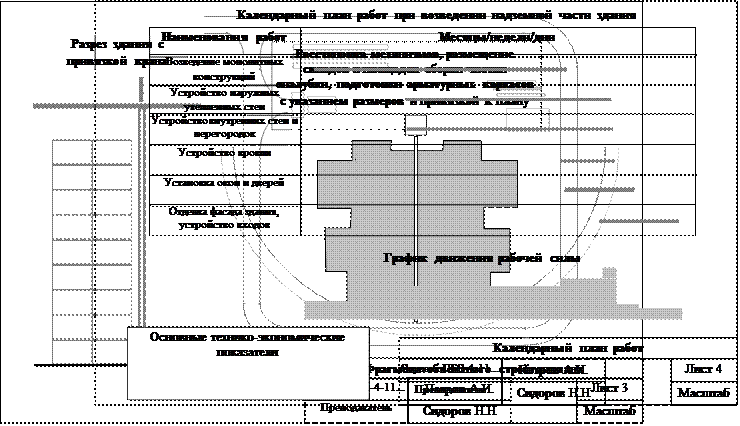 – сводный график производства работ на надземную часть здания с взаимоувязкой смежных строительно-монтажных работ во времени;