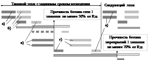 – раздел организационно-технологического проектирования, включающий определение рациональной схемы разбивки типового этажа на захватки, технологии монтажа опалубочных систем, армирования, укладки и выдерживания бетона. На основании принятых решений и заданных сроков возведения здания устанавливается темп возведения типового этажа и численность бригады (звеньев) исполнителей работ, осуществляется разработка детального графика производства работ на этаже;