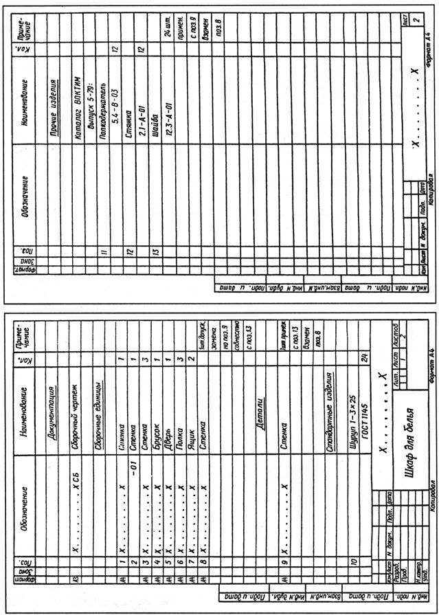 записывают изделия, применяемые по государственным и отраслевым стандартам. Их записывают в алфавитном порядке, а в пределах одного наименования и одного ГОСТа – от меньшего размера изделия к большему, например шуруп 3x25, затем 4x25.