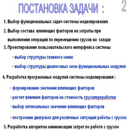 - постановка задачи, выбранной в качестве темы будущей дипломной работы;