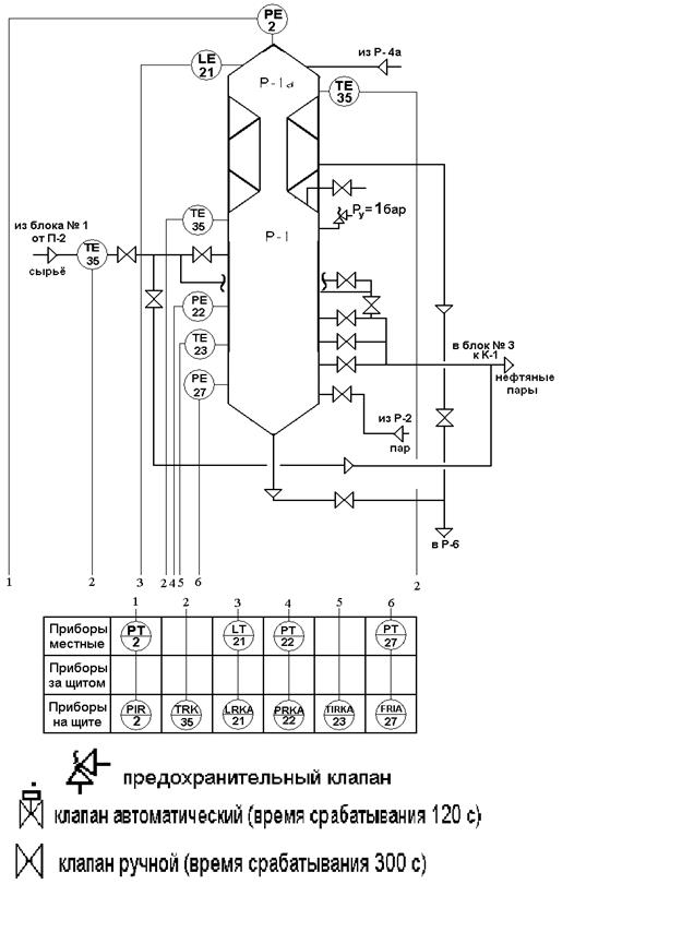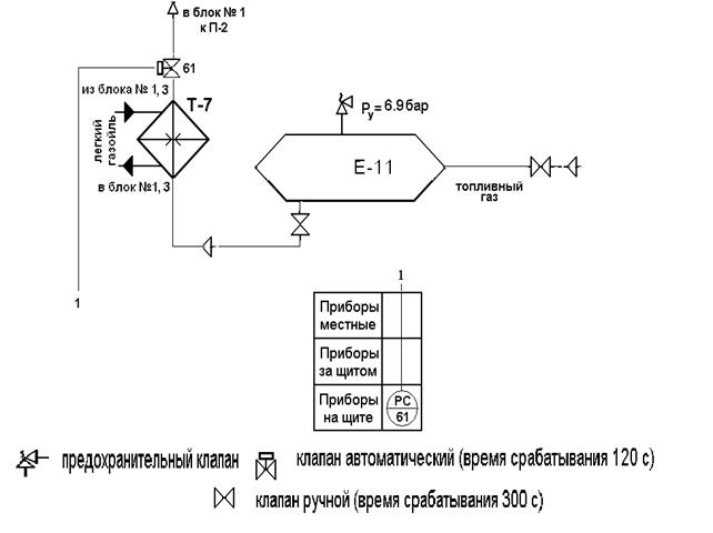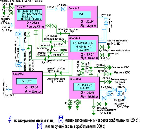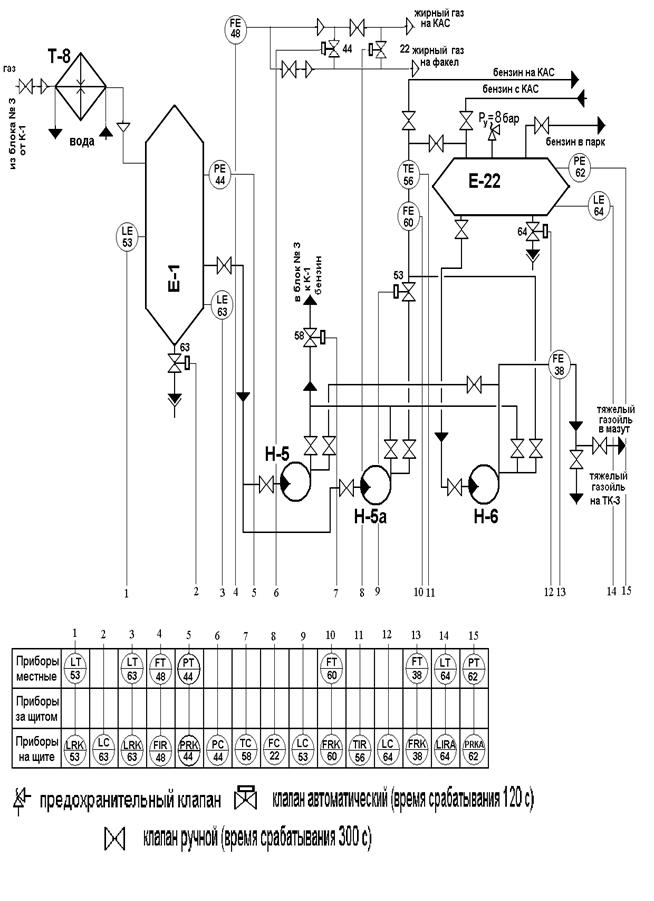 (трубопровод от Е-1а на КАС, трубопровод от Т-1 к П-2, Е-6 – частичная разгерметизация, трубопровод от К-1 к АВЗ-1,2, ретурбент П-2 с сырьем в газообразном состоянии)