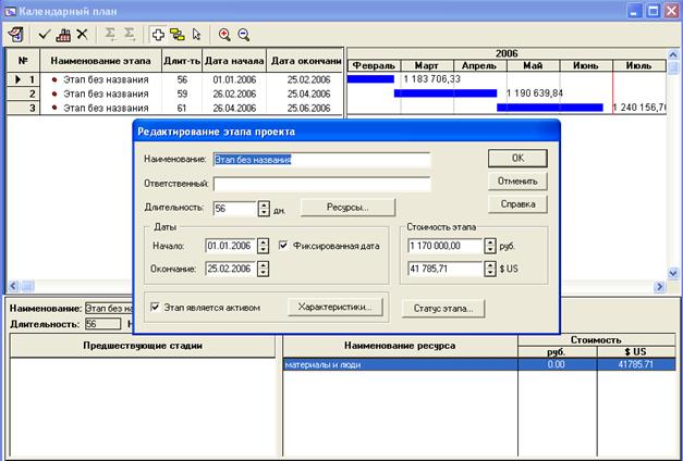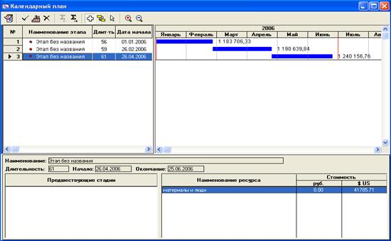 В итоге получить календарный план проекта, на котором отображается информация о стоимости этапов проекта:
