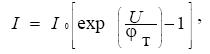 обратный (или тепловой) ток, - температурный потенциал электрона.