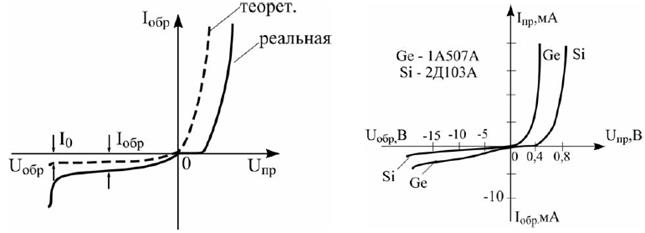 Основной характеристикой полупроводниковых диодов служит вольт-амперная характеристика. В отличие от характеристики идеального p-n-