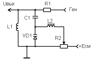 Принципиальная схема макета, представленная на рис. 10, позволяет изучить основные свойства варикапа. Для снятия вольт-фарадной характеристики (ВФХ) варикапа на его катод подается регулируемое напряжение Eсм положительной полярности от стабилизированного источника питания. ВЧ-сигнал подается на контур через резистор R1 с внешнего генератора.