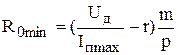 На диаграмме слева проводят прямые аб и ав зависимости R(V), соответствующие токам Iт