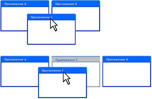 Одних перекрывающихся окон, которые можно передвигать с места на место, для обеспечения сколько-нибудь комфортной работы недостаточно. Если бы для переключения между окнами приходилось каждый раз выкапывать нужное окно из общей стопки вручную, пользователи, наверное, старались бы больше одного окна на экране не открывать.