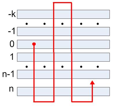 На рисунке, красная линия – это перемещение курсора пользователя. Когда клавиша мыши будет отпущена, значение контрольной суммы станет равным n-1. Теперь нам надо получившийся порядок отобразить на текущий, чтобы знать после какого объекта добавлять новую панель. На рисунке (Рис 9 Определение уровня панели) показано, как пересчитывается порядок, d – номер панели в текущем порядке.