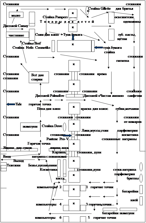 Цель работы – научиться анализировать работу торговой точки, оценивать эффективность расположения Pos-материалов, прослеживать наиболее ходовые, выгодные и прибыльные товары, изучить планировку торговой точки, промо-акции и их эффективность.
