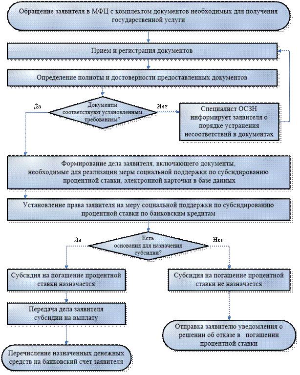 Блок-схема общей последовательности процедур при предоставлении государственной услуги по субсидированию процентной ставки по банковским кредитам