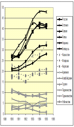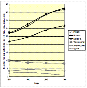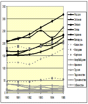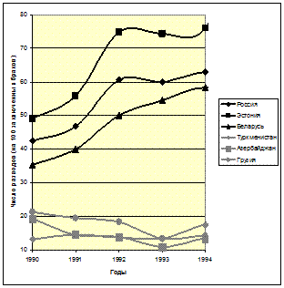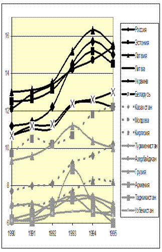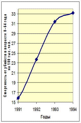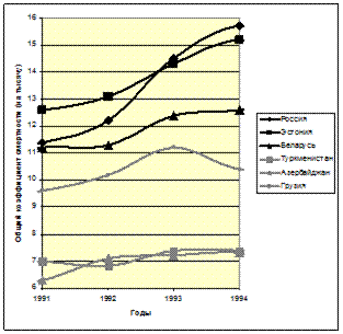 4. 1992-1994 гг. - Период резкого повышения потребления алкоголя и смертности населения