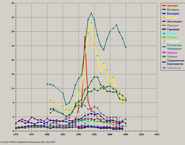 . М., 1997; Leon D. A., Chenet L., Shkolnikov V. M., Zakharov S., Shapiro J., Rakhmanova G., Vassin S., McKee M. Huge Variation in Russian Federation Mortality Rates 1984–1994: Artefact, Alcohol or What? // Lancet