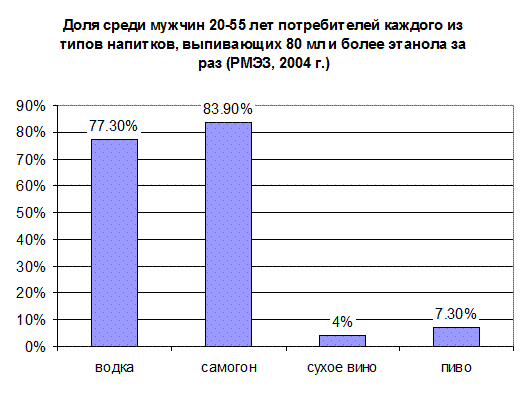Вклад крепких алкогольных напитков в алкогольную смертность в России