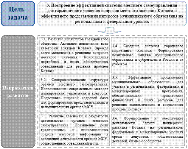 3. Построение эффективной системы местного самоуправления для гармоничного решения вопросов местного значения Котласа и эффективного представления интересов муниципального образования на региональном и федеральном уровнях.